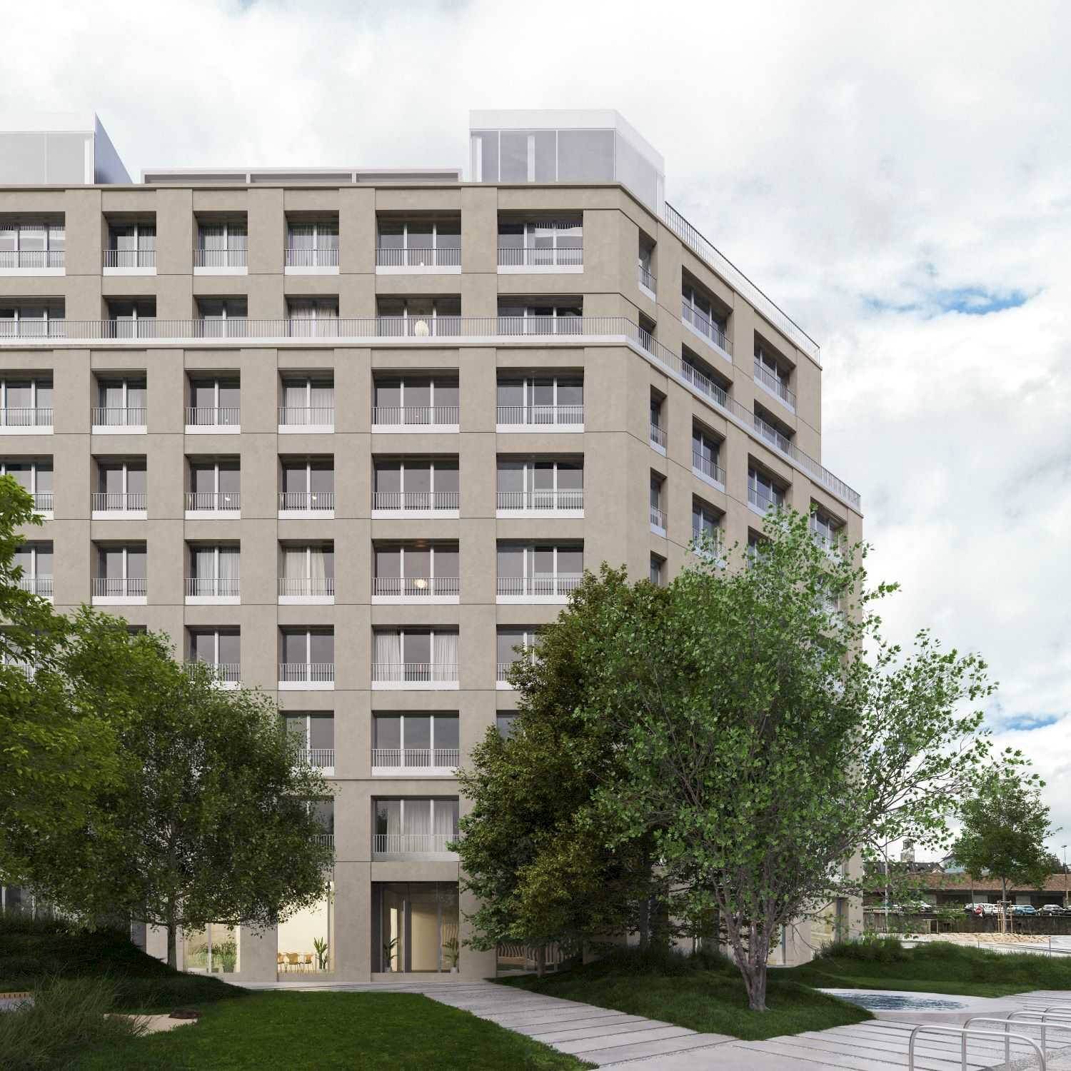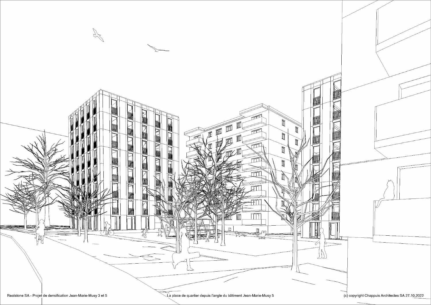 Deux immeubles et place de quartier Fribourg